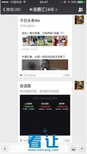 答:在微信里聊天和在微信里看公众号内容,是两件无法同时进行的事。好在,在使用“小程序”的时候,完全不需要担心这一点。 只要点击小程序右上角“…”,再点击“显示在聊天顶部”,“小程序”就会出现在微信聊天页面的很上方。目前看来,置顶时间大约在半小时。
