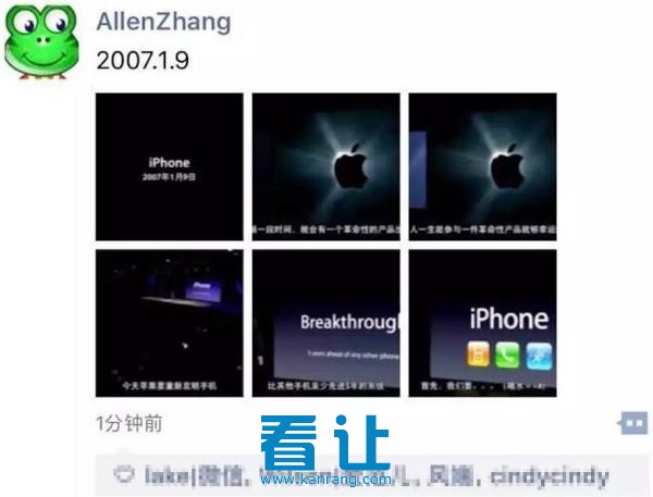 “小程序”上线后,张小龙在微信朋友圈发了几张图致敬苹果公司。2007年1月9日,乔布斯发布了第一代iPhone,此后世界进入移动互联网时代。